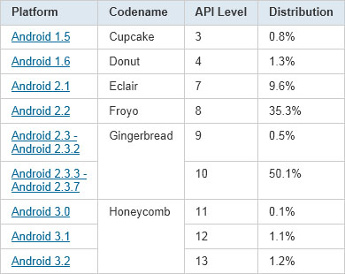 На сайте разработчиков Google Android обновлена таблица версий ОС.