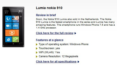 На сайте голландской сети магазинов Typhone появилась страничка смартфона Nokia Lumia 910. Его техни ...