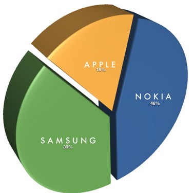 Компания IDC, занимающая аналитикой, назвала лидеров рынка сотовых телефонов: это Nokia, Samsung и A ...
