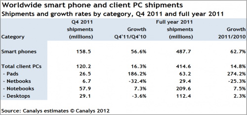 По данным исследовательской компании Canalys, в 2011 году смартфонам впервые удалось обогнать по пос ...