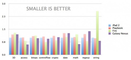 ![]() На сегодняшний день соотношение сил таково: Android-браузер позиционируется как «большой шаг вперед», в то время как браузер iOS 5 продолжает собирать положительные рецензии и гонорары (хотя этот процесс можно назвать временным). Sencha протестировали оба браузера. Были выбраны следующие показатели: Производительность и точность рендеринга; Производительность JavaScript; Поддержка HTML5/CSS3. С точки зрения рендеринга (визуализации) оба браузера примерно одинаковы: количество баллов, полученных в тесте Acid3 почти равнозначно. Замечено наличие артефактов, однако их объем в обоих случаях незначителен. Для следующего прогона был выбран тест SunSpider. В этой серии проверок Javascript нагружается в максимальном объеме. Результат показан на графике. Стоит заметить, что для тестирования использовался iPad 2, поскольку производительность его процессора ближе к Android-ному Galaxy Nexus. ![]() Результаты набирающего популярность планшета Kindle Fire (при его невысокой производительности) оказались на уровне других устройств. Величина зафиксированной разницы измеряется несколькими миллисекундами. Оба задействованных устройства продемонстрировали хорошие возможности HTML5, однако при этом iOS 5 обогнала Android 4.0 Ice Cream Sandwich сразу по нескольким параметрам. ![]() В этом списке наиболее важными маркерами являются Web Workers и Web Sockets, обеспечивающие взаимодействие между web-страницей и устройством в реальном времени, а также контролирующие работу нескольких локальных скриптов. Выражаясь более простым языком — большинство web-приложений не будут «тормозить». Итог следующий: выявленные различия достаточно незначительны для обычных пользователей. Безусловно, разница между iOS 5 и Android браузерами существует, но ее сможет заметить только специалист. Источник: AllTablets.ru — Мир планшетных компьютеров | |