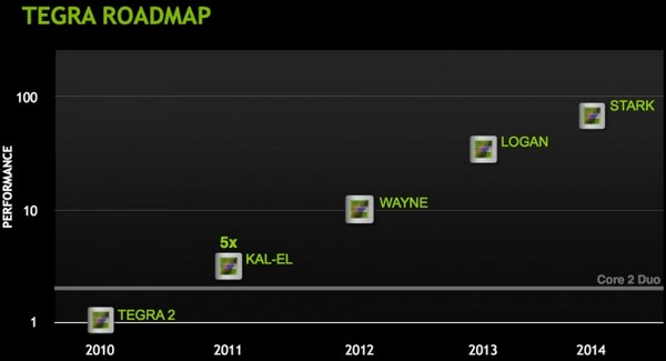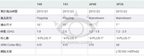 Чей-то умелый фотошоппинг © 2012 В сеть утекла первая информация о еще не анонсированной платформе Nvidia Tegra 4. Как нам уже известно из прошлогоднего графика сверху, новая платформа Nvidia Tegra 4 имеет кодовое название Wayne, однако, она не будет выпущена на рынок в 2012 году, как планировалось, а лишь в начале 2013 года (и то не факт, как показал опыт со сроками выпуска Tegra 3). Судя по утекшей таблице снизу, новинка будет основана на четырех ядрах A15 на 1.8 ГГц, работающих по схеме 4-PLUS-1, использующей еще интегрированное пятое ядро для не требующих производительности вычислений (что позволяет сохранять и разумно расходовать энергию батареи). В третьем квартале 2013 года появятся модели на 2 и 1.2-1.8 ГГц (во второй, видимо, еще не определились с частотой). Обратите внимание на то, что у Tegra 4 не будет интегрированных модулей LTE и HSPA вплоть до появления в третьем квартале модели на старых ядрах A9 с частотой 1.2-2.0 ГГц и вышеупомянутыми модулями. Если первые три модели систем-на-чипе будут устанавливаться в 10-дюймовые планшеты (хотя мы сомневаемся, что дело ограничится именно устройствами с такой диагональю), два из которых являются флагманскими, то четвертая будет установлена в 7-дюймовом бюджетном планшете. Источник: gagadget.com | |