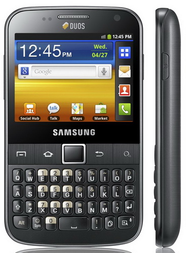 ![]() Смартфоны поддерживают одновременную работу двух SIM-карт и базируются на ОС Android 2.3. Модель Galaxy Y Duos выполнена в формфакторе моноблока, оснащена процессором с частотой 830 МГц, 3,14" дисплеем с разрешением 240x320 пикселей, модулями Wi-Fi, GPS и Bluetooth 3.0. Смартфон оборудован 3-мегапиксельной камерой, 3,5-миллиметровым аудиоразъемом, акселерометром, датчиком освещенности и слотом microSD (в комплекте идет карточка объемом 2 ГБ). Размеры устройства составляют 110x60x12 мм, вес — 109 г. ![]() Samsung Galaxy Y Pro Duos имеет дисплей диагональю 2,6" и физическую QWERTY-клавиатуру, а в остальном технические характеристики совпадают с Galaxy Y Duos. Размеры устройства составляют 111x64x11,9 мм, вес — 112 г. Источник: onliner.by | |