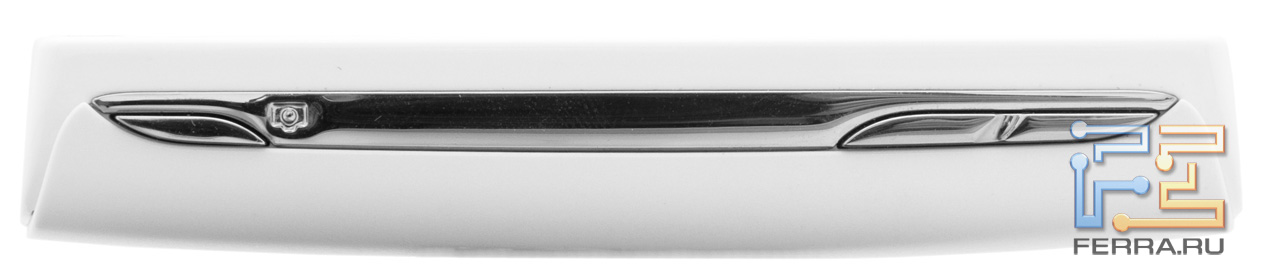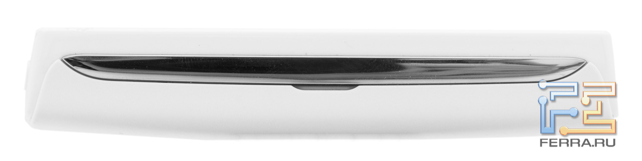 На верхнем торце корпуса помещены клавиша включения, дополнительный микрофон для шумоподавления, небольшой светодиод. Он мигает красным при недостаточном заряде батареи, горит во время зарядки, извещает зеленым цветом о полной зарядке аккумулятора, а синим уведомляет о звонке, сообщении, напоминании.