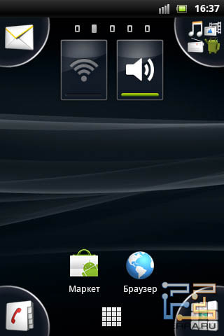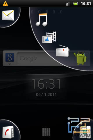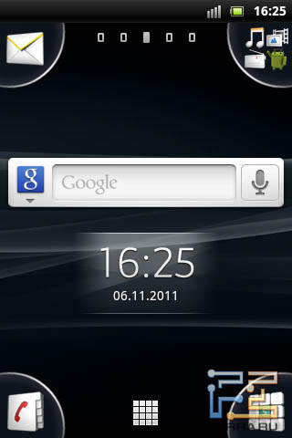 Галерея в интерфейсе Sony Ericsson Xperia mini Но есть в Xperia mini и индивидуальные дополнения. Одной из фишек «мини-интерфейса» были четыре виртуальные кнопки по краям главного экрана, которые обеспечивали доступ к четырем базовым функциям смартфона: клавиатуре набора, контактам, сообщениям, браузеру.