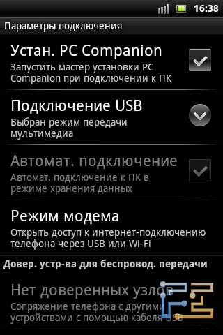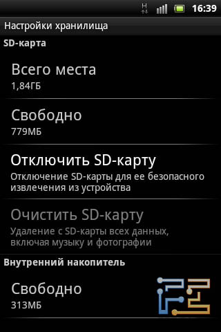 Настройки хранилища на Sony Ericsson Xperia mini